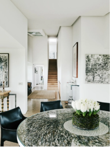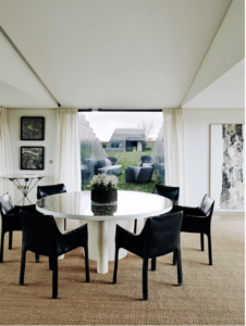 Interior of Flint House by David, featuring a table designed by Jacob Rothschild; photographed by Michael Sinclair