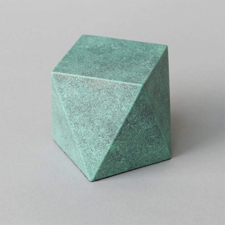 Verdigris harnesses the naturally occurring process of oxidisation. We start with bronze and apply a solution which expedites the colouration typically incited by exposure to the elements. A blue-green hue emerges, producing a varied yet even effect across the surface. There’s a smooth and slightly milky quality to the finish which brings levity to weighty bronze forms.