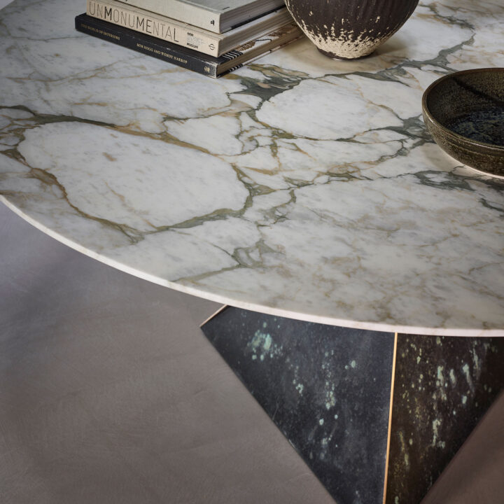 Soften this angular design with a round marble top, or accentuate it with a glass top, which leaves the AVA beneath on full display.