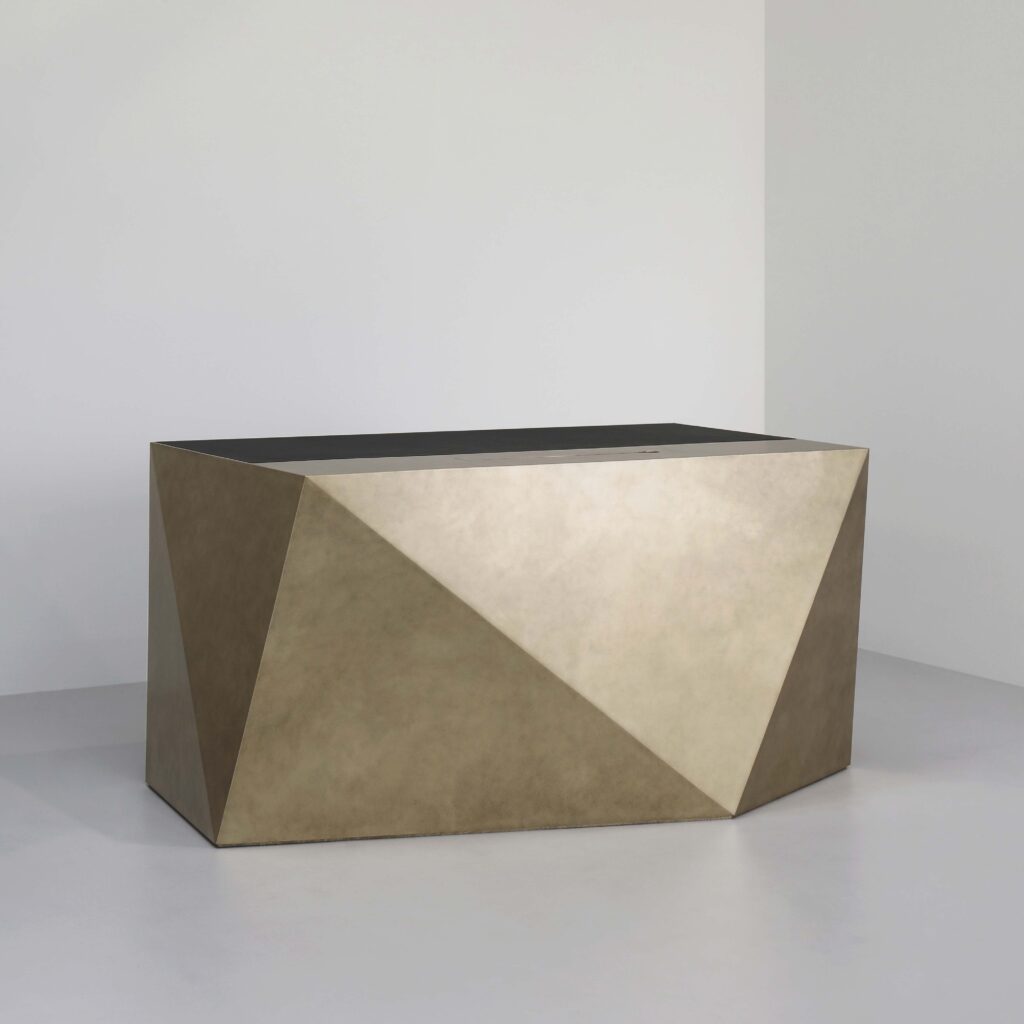 The Balzac desk is a strong and sculptural piece which looks like a fortress of folded steel. It’s exceptionally well suited to modern home offices, with a robust leather top panel which makes writing a joy. Three solid walnut drawers create space for sundries, while a cable management system maintains order. This desk is part of the wider Balzac collection, with a range of matching elements available to enhance its effect. You can select the finish and leather of your choice from a range of options here.