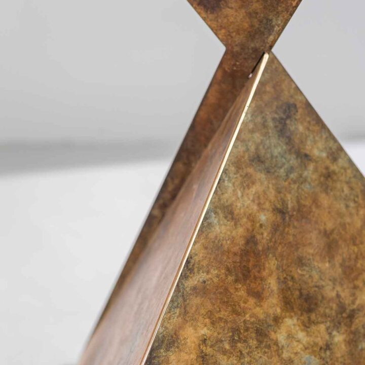 The bronze has a “Scorched Earth” patination that Chris chose to go with his beautiful garden, and the leading edges are slightly polished for contrast.