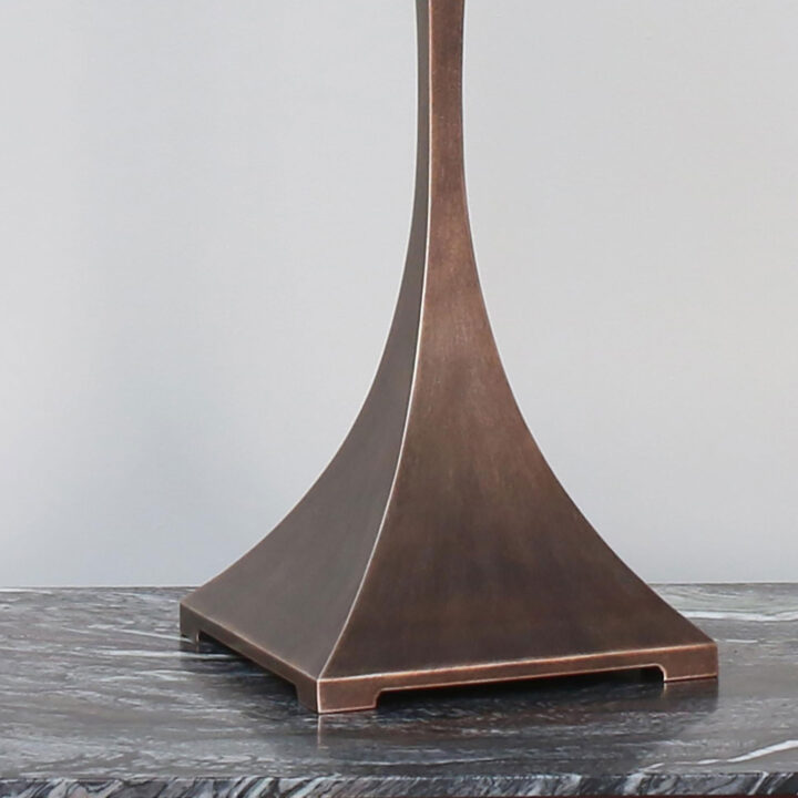 The Capricorn table lamp distills a quintessential Tom Faulkner design down to compact accent object. The sloping faces of this modern desk lamp beautifully capture a cascade of light from above, emanating a soft glow. You can select the finish of your choice to enrich the quality of the light, imparting warmth in Florentine Gold or a cool luminosity in Moon Silver, for example. The crisp edges of the lamp are forged by hand to exacting standards, creating a clean and polished effect.