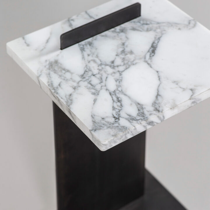 The Edge side table is one of Tom’s more graphic, linear pieces. It’s a minimalist design composed of just three elements: two plates of steel and one top in the material of your choice. We can fit a gold-plated top, a slab or marble, or a solid bronze plate. Similarly, the base can be completed in your choice of finish, all of which are available to view alongside our full offering of materials here. If you do opt for a marble top, we’d suggest reading up on how to care for marble. This design is also available in a round format, as well as a bedside table iteration which comes with an integrated drawer.