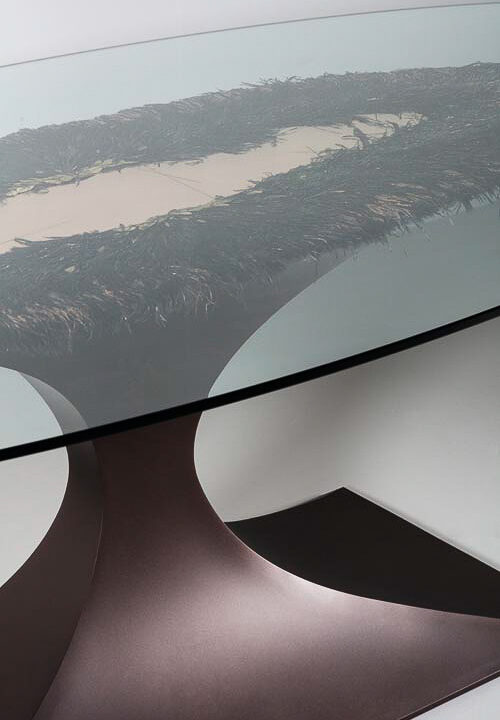 When Eric met Tom he was Eric immediately struck by a quality that Tom’s furniture shared with his beloved feathers: the seamless combination of form and functionality. “I was mesmerised by the lines” he says, “the perfection of what are, to me, his very natural designs. They seem almost obvious because they are so perfect, like great music.”