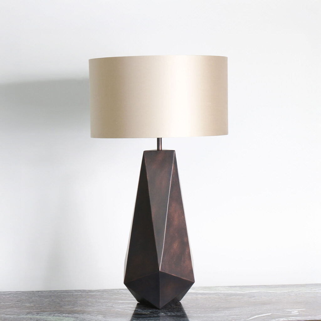 The Galena table lamp is a work of complex yet clean metal geometry. It’s a contemporary accent piece which brings a lift and a light to its environment. Each one is made to order in your choice of standard or specialist finish, the full range of which is available to browse here. Please note that the listed height does not include a lamp shade.