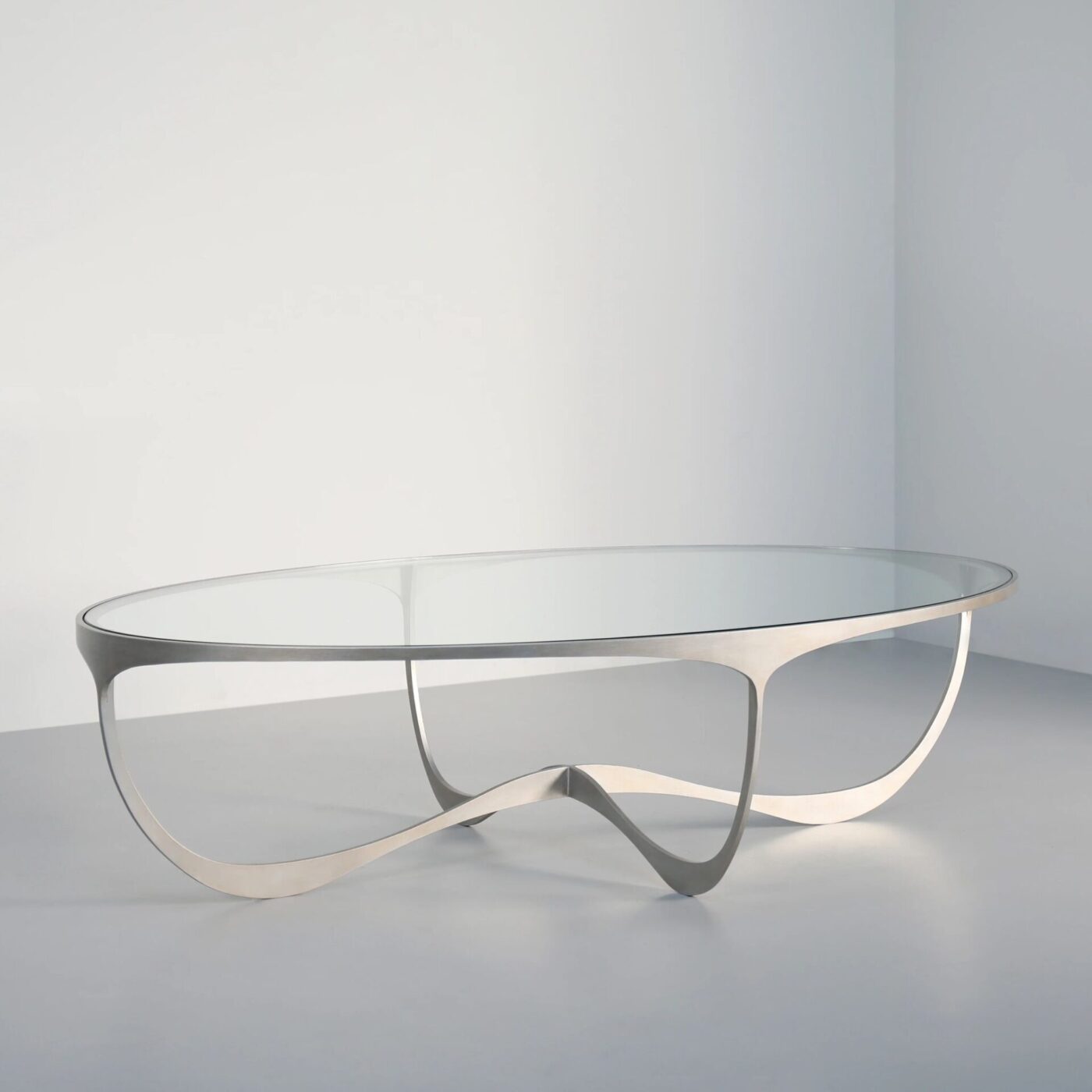 The Memphis combines flowing curves with crisp craftsmanship to produce a soft yet contemporary design. This oval coffee table starts with an airy metal frame, creating a sense of openness. A clear glass top heightens the effect, giving the piece a minimalist, almost futuristic feel. The oval format facilitates a smooth flow of movement around the table and can be made to the bespoke dimensions of your choice. To get a sense of the ideal sizing for you, we’d recommend a look at our Coffee Table Size Guide. You can then further customise the Memphis in your choice of standard or hand-painted specialist finish.
