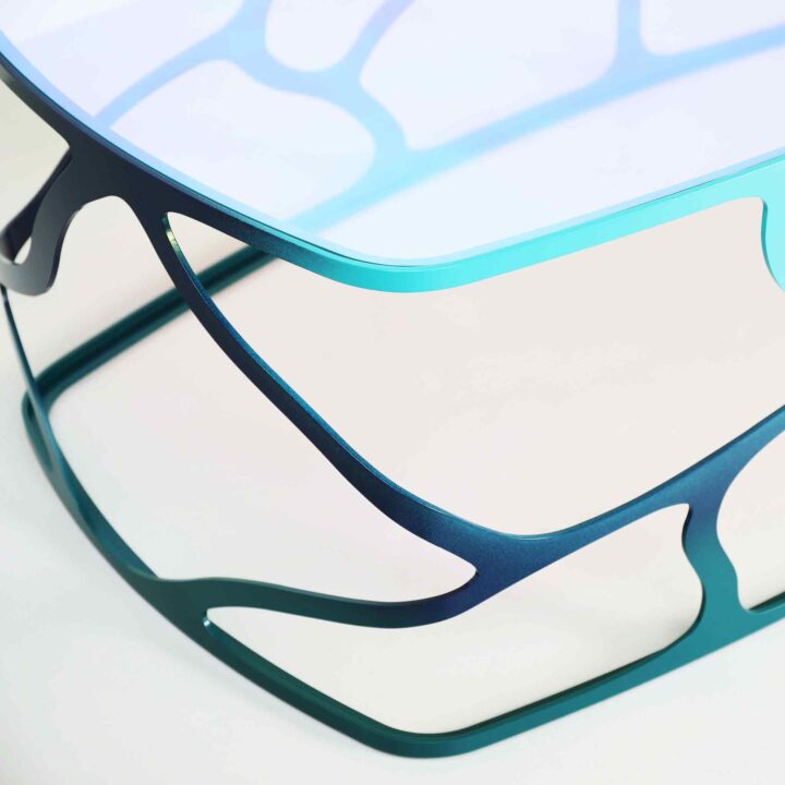 This rectangular coffee table with rounded corners reimagines the rambling, organic lines of our Papillon design in a larger, longer format. It marries the practicality of a rectangular coffee table with the soft, curvaceous quality of its circular counterpart. The result is a design centrepiece that maintains a fluid quality, facilitating flow of movement through its environment. You can opt for one of our energising metallic or powdercoat finishes, or go bold with a specially developed ‘Butterfly’ colourway. To really catch the eye, add a dichroic glass top, which infuses light with technicolored inflections as it filters through.