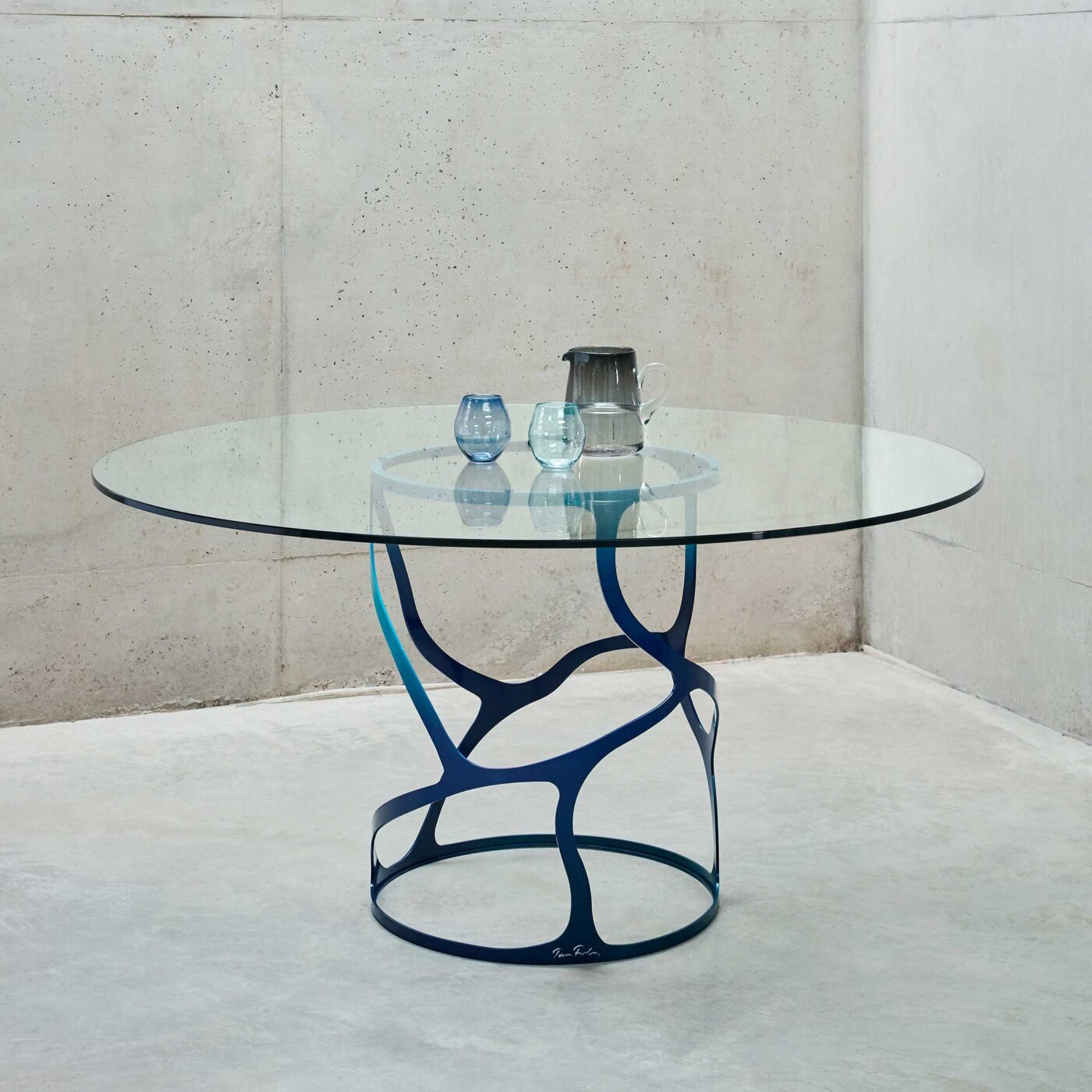 The delicate, rhythmic framework of this metal round dining table makes it a true statement piece. Its inspiration came from the intricate patterns of butterfly wings, in all their lightness and dynamism. The Papillon presents a beautiful gathering point in intimate dining areas, with its circular format creating an especially engaging dynamic. We’d suggest pairing it with our matching stools to complete the nature-inspired vignette. The Papillon also makes a striking feature piece in an entryway, particularly when the base is finished in one of our specially developed ‘Butterfly’ colourways. This bespoke round dining table can be crafted to your preferred dimensions and topped with glass or marble. To find out more about selecting the right dining table shape and size for you, have a look at our guide.