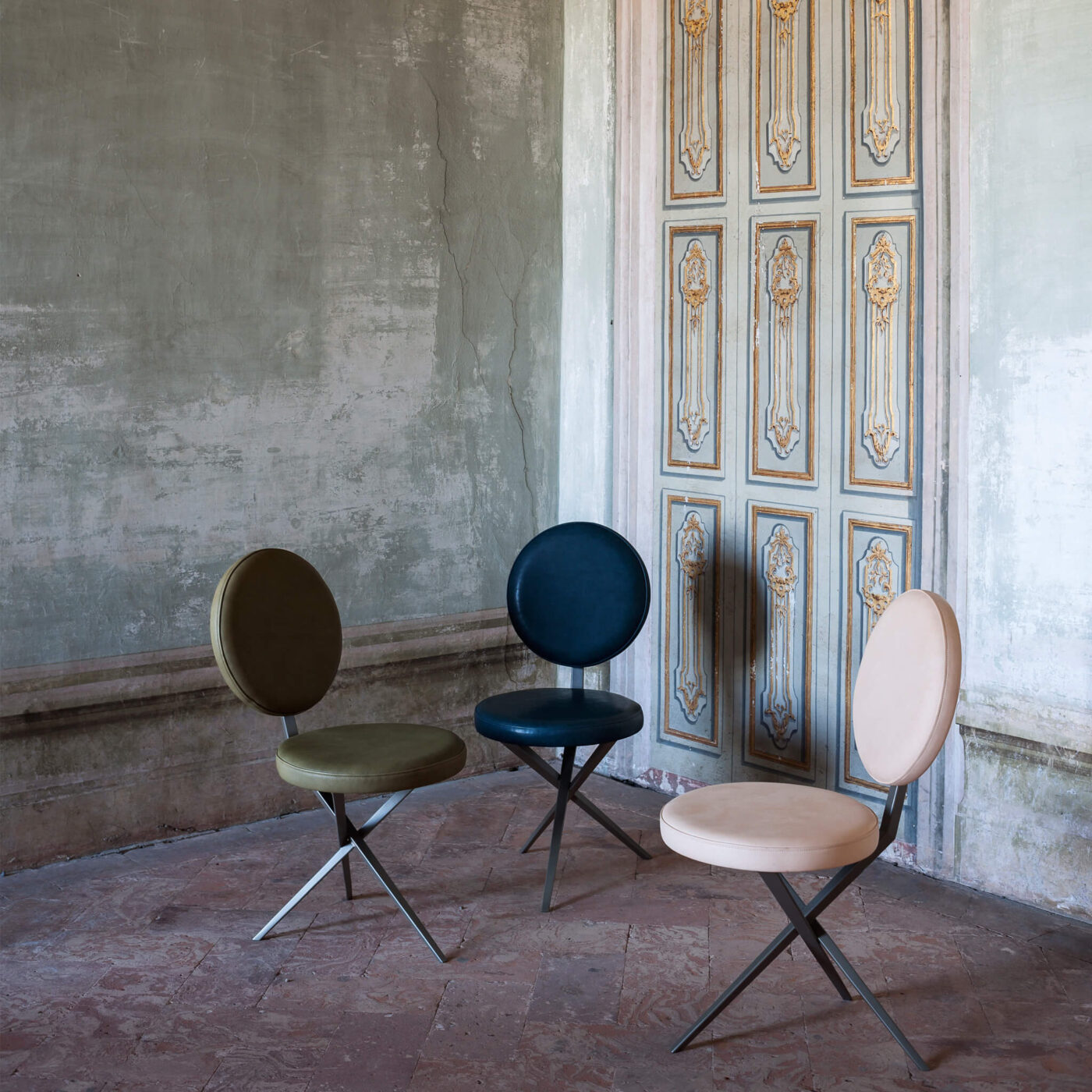 Three spears of steel nest together in an hourglass format, splaying out to support the seat of our Phoenix chair. Each of the legs is forged in a triangular shape, tapering as it approaches the floor. The Phoenix collection finds inspiration in George Nelson’s famous ‘Marshmallow’ sofa, with spindly legs and a buoyant, circular seat. It carries a slightly mod flavour into the contemporary era, with a circular seat and backrest coming together in a sleek and streamlined format. Explore more of the Phoenix collection to combine elements for a cohesive look.