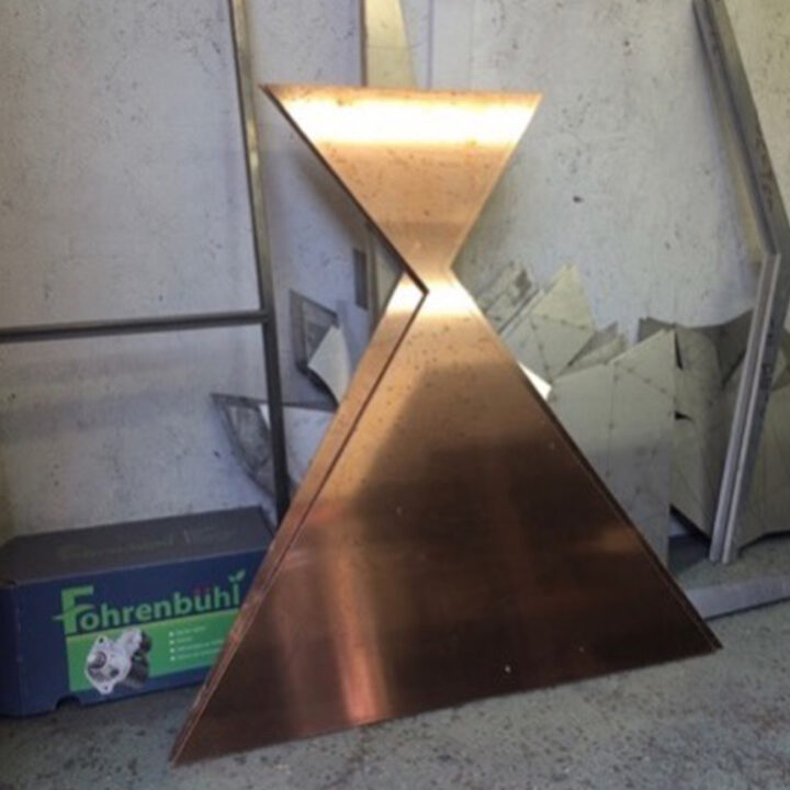 AVA is simple in silhouette but complex in structure. The base is formed of two tetrahedrons which look as though they are balanced one on top of the other.