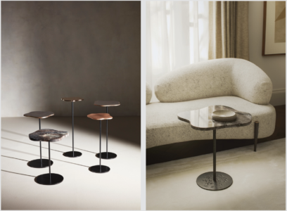 The organic Lily shape has become a Tom Faulkner signature. It’s an entirely unique silhouette modelled after that of a lily pad drifting on the water’s surface. Since its inception, Tom has reimagined the design in various forms. The cocktail tables have been a popular choice, with their floating tops of coloured Venetian glass, rich marble, or textured metal. An array of options – from mirrors, to coffee tables, to accessories – pose countless ways to create a cohesive design narrative with our Lily collection. We’ve recently added some captivating additions to the roster, which we’re thrilled to introduce here. Read on for a look at the fresh faces of Lily, in all their wonderfully wobbly glory…